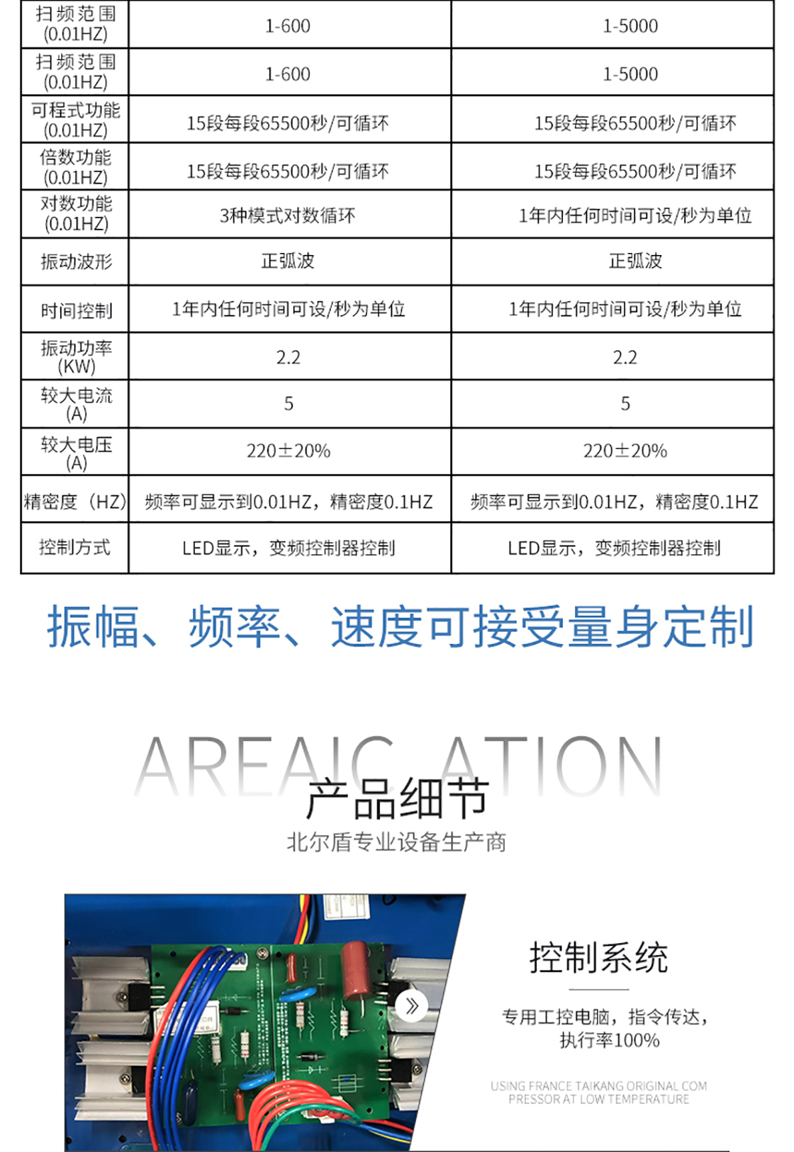 模擬實際工況考核和結構強度試驗,產品應用范圍廣泛、適用面寬、試驗效果顯著、可靠。正弦波、調頻、掃頻、可程式、倍頻、對數、最大加速度,調幅,時間控制,全功能電腦控制,簡易定加速度/定振幅。設備通過連續無故障運轉3個月測試,性能穩定,質量可靠。