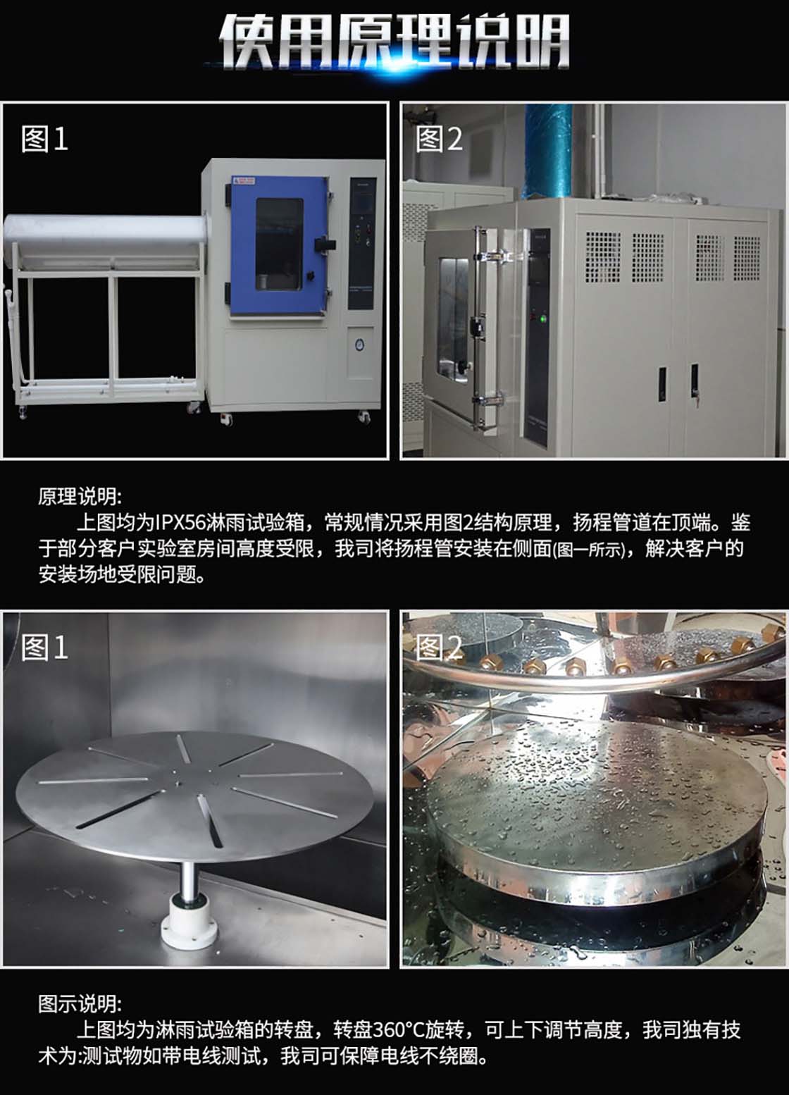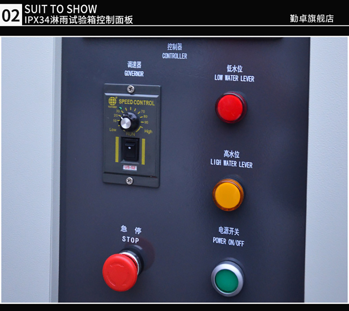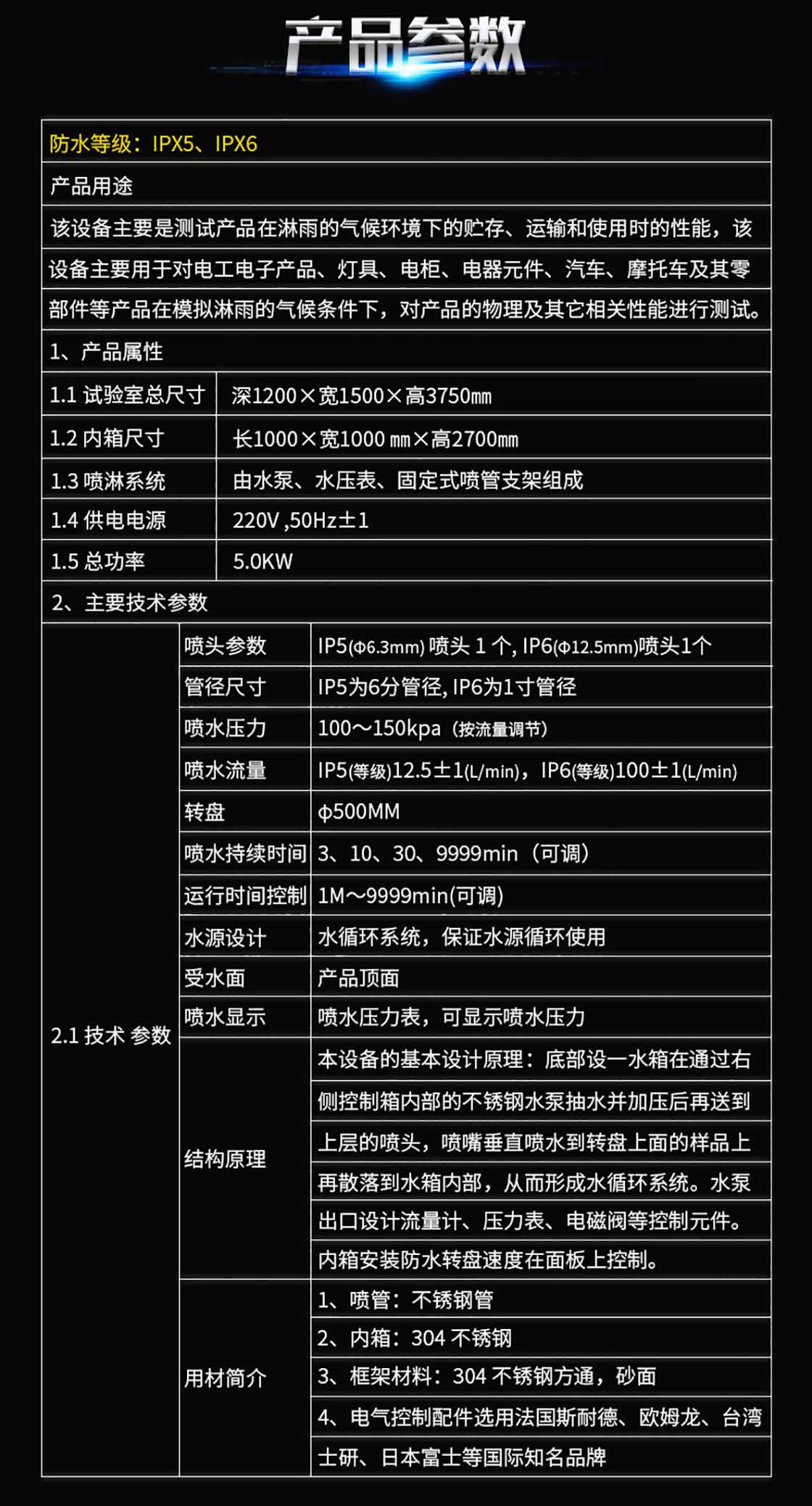 淋雨試驗箱主要適用于電子電工,航空航天,軍工等科研單位外部照明、信號裝置及汽車燈具外殼防護試驗檢測。