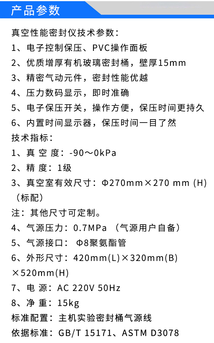標準配置:主機 實驗密封桶 氣源線